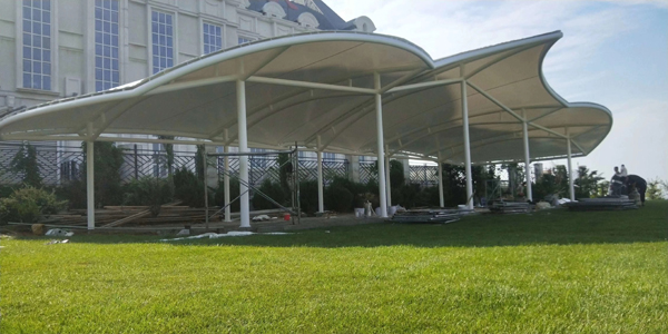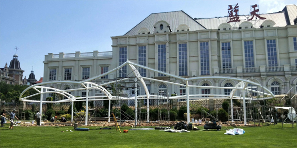 煙臺海昌漁人碼頭婚禮草坪膜結構施工完成